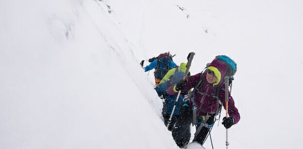 Bei feinstem Badewetter sitzen wir in München an der Isar und schauen uns die Wettervorhersage für unseren ersten Hochtourenkurs an, überzeugt, dass der Deutsche Alpenverein ihn in letzter Minute absagen wird. Niemand würde doch wohl auf die Idee kommen, jemanden bei vorhergesagtem Sturm, gefühlten Temperaturen bis minus 20 Grad und angekündigten Schneemassen an den Berg zum Üben zu schicken … Weit gefehlt! Ein prüfender Blick auf unsere Ausrüstung genügt, und uns wird klar: Für den Winter sind wir nicht ausgerüstet. In größter Eile kaufen wir Primaloft- und Daunenjacken und hoffen, dass uns die vielen Schichten, übereinander angezogen, warmhalten werden. Unseren Hardshell-Layer werden wir besonders lieben lernen.